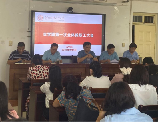 会上,焦永刚副书记传达学校关于学习贯彻习近平新时代中国特色社会主义思想主题教育相关文件精神和2023年度学生军事技能训练实施方案的贯彻落实情况,对学生相关工作进行汇报;樊晓磊副院长就如何进一步提高法科研究生培养质量提出了措施;陈鹏飞副院长强调了近期本科教学工作、科研工作的重点事项;