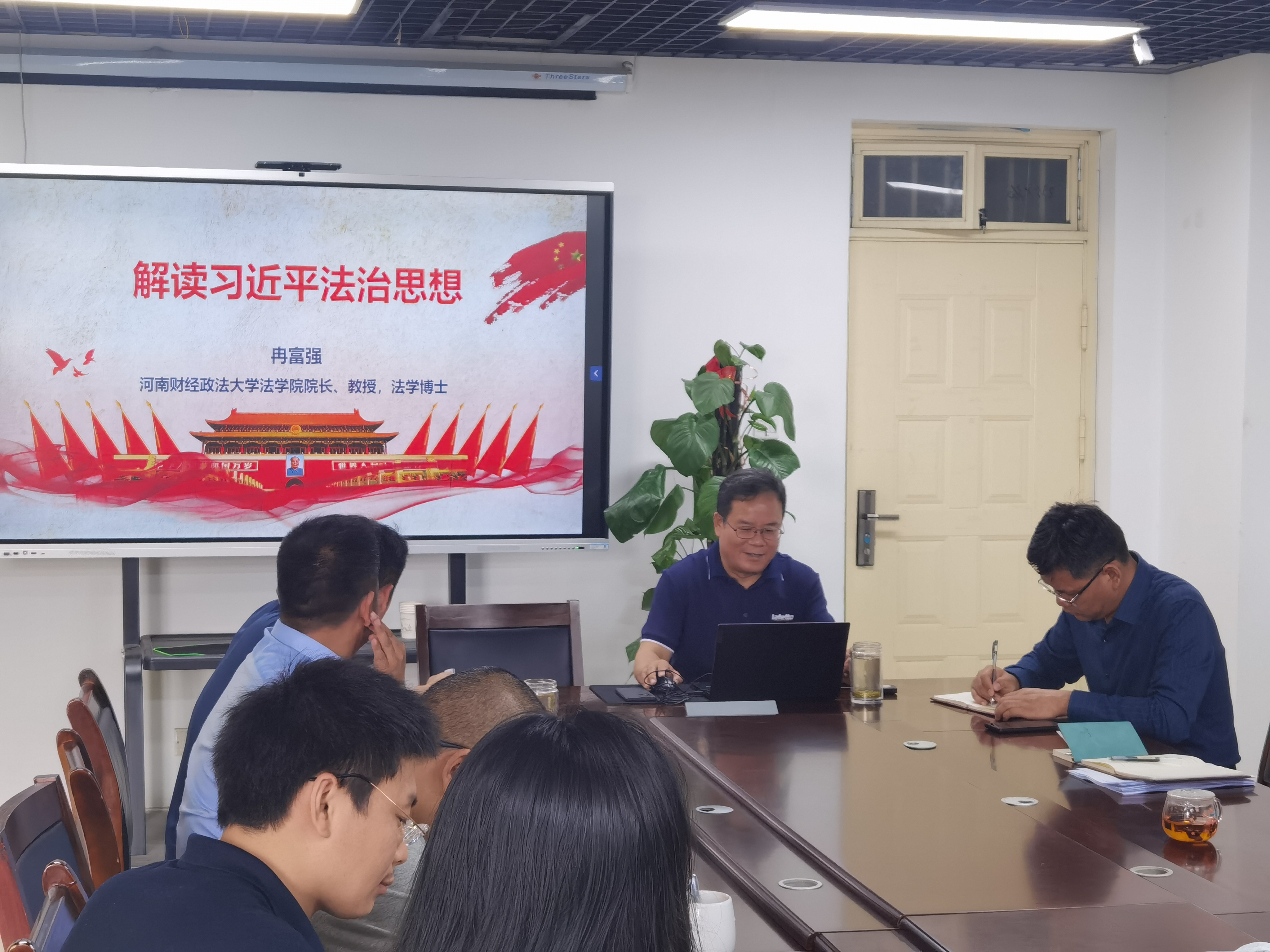 冉富强以“解读习近平法治思想”为主题,从习近平法治思想形成发展的时代背景、习近平法治思想形成发展的逻辑证成、习近平法治思想的核心要义、习近平法治思想的科学方法、习近平法治思想的实践要求等五个方面完整阐释了习近平法治思想的发展脉络、重大意义、深刻内涵、精神实质及其在指导中国法治实践过程中所提出的整体方案、重要路径和基本举措,重点对习近平法治思想核心要义中的“十一个坚持”进行了深入的分析和解读,使全体与会人员加深了对习近平法治思想的认识和理解。