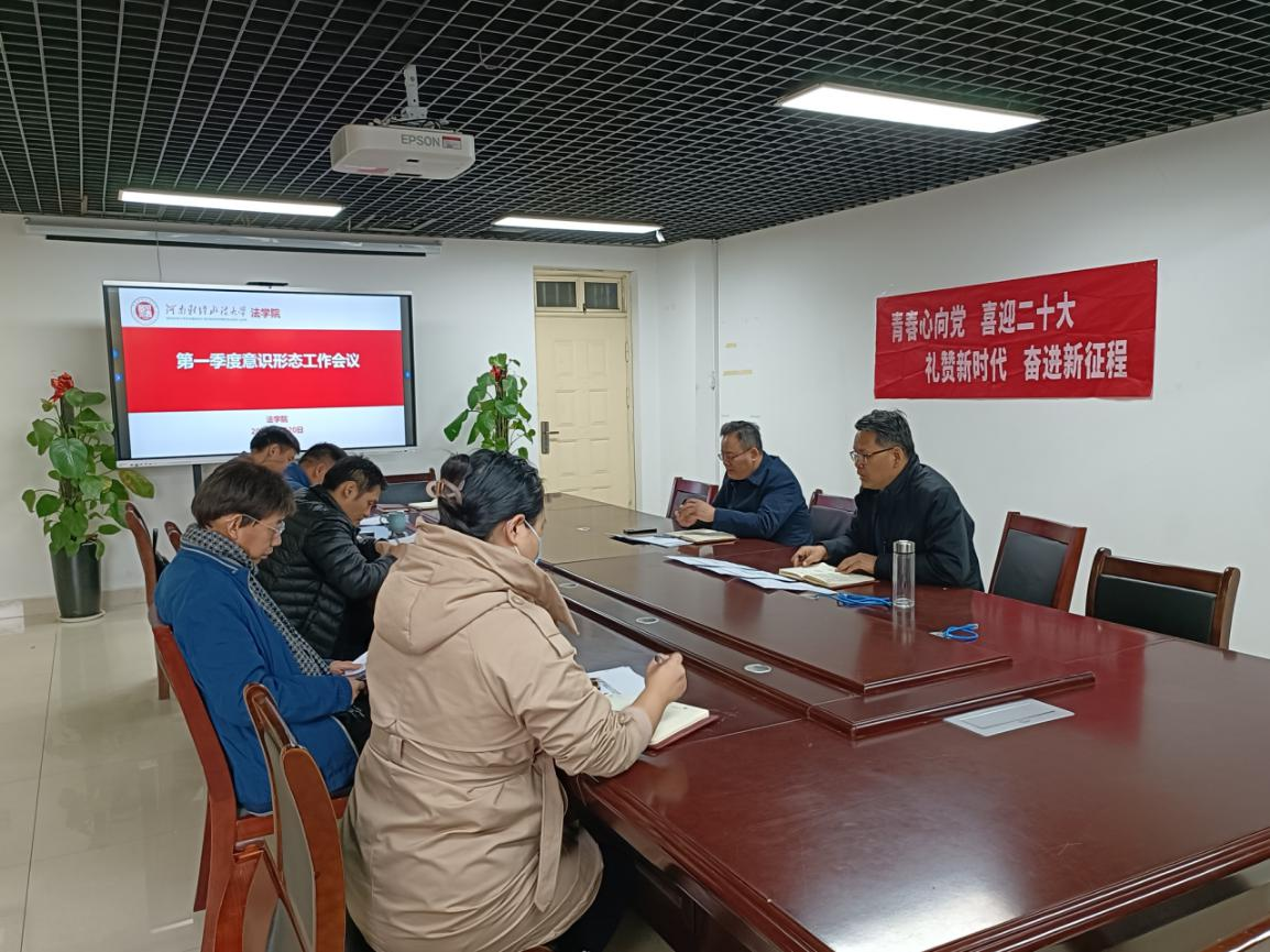 为贯彻落实学校党委关于意识形态工作的要求,3月20日,人人爱人人爽召开第一季度意识形态工作专题会议。会议由人人爱人人爽党委书记郭书山主持,院长冉富强、院党委副书记焦永刚、副院长陈鹏飞等参加了本次会议。