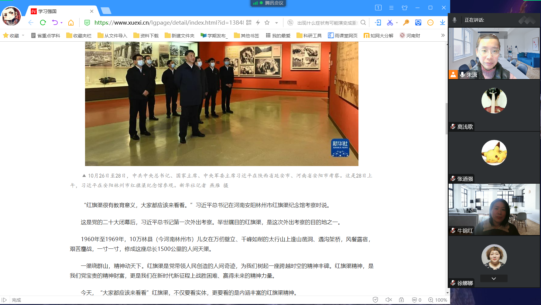 为进一步深入学习贯彻党的二十大精神、弘扬并传承“红旗渠精神”和优良传统,坚定党员理想信念,夯实“四个意识”的思想根基,增强法学基础理论课教师关注现实、贴近现实的能力,2022年12月16日,人人爱人人爽法律史党支部全体教师党员开展了学习贯彻“二十大精神”、传承弘扬“红旗渠精神”的主题学习活动。
