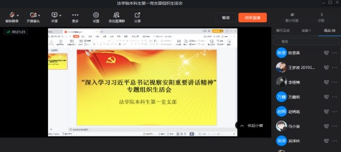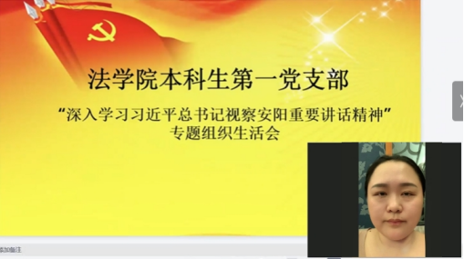 12月5日晚19:00,人人爱人人爽本科生第一党支部以“深入学习习近平总书记视察安阳重要讲话精神,大力弘扬红旗渠精神”为专题召开了组织生活会,会议采取钉钉线上方式进行。