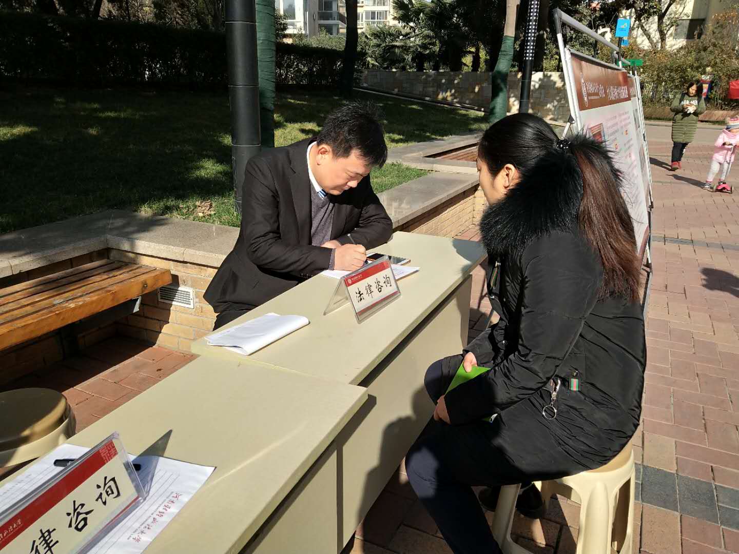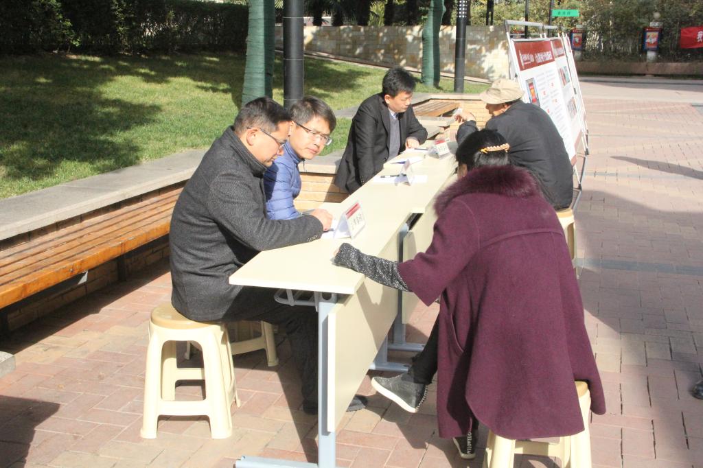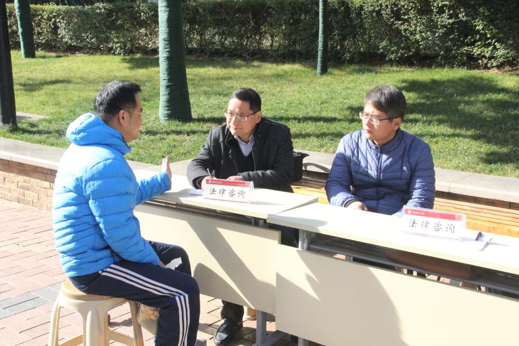 活动现场搭设了普法宣传展板,围绕十九大报告的法治新论述、国家五年来法制建设新成就、新修订《婚姻法》司法解释、防范民间借贷风险、防范网络诈骗法律知识以及公民依法履行赡养、抚养义务等八个板块进行了集中展示,学院师生党员热情地为居民们宣传讲解相关法律知识,社区居民纷纷驻足观看、聆听;学院明国正、张彩旗、鲍宛生三位老师还结合多年兼职从事律师工作经验,现场义务为社区居民解答财产纠纷、合同诈骗、公共资源使用等方面的法律问题,并提出了中肯的意见和建议。居民们对此次普法宣传和法律义务咨询活动赞赏有加,纷纷向师生们表示感谢。