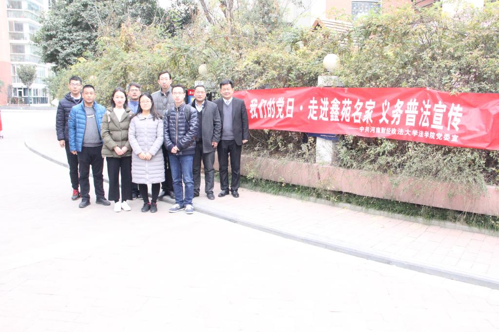 12月9日上午,人人爱人人爽党委组织师生党员来到郑州市金水区鑫苑名家社区,开展“我们的党日·走进鑫苑名家 义务普法宣传”主题党日活动,为社区居民提供普法宣传、义务法律咨询等服务。