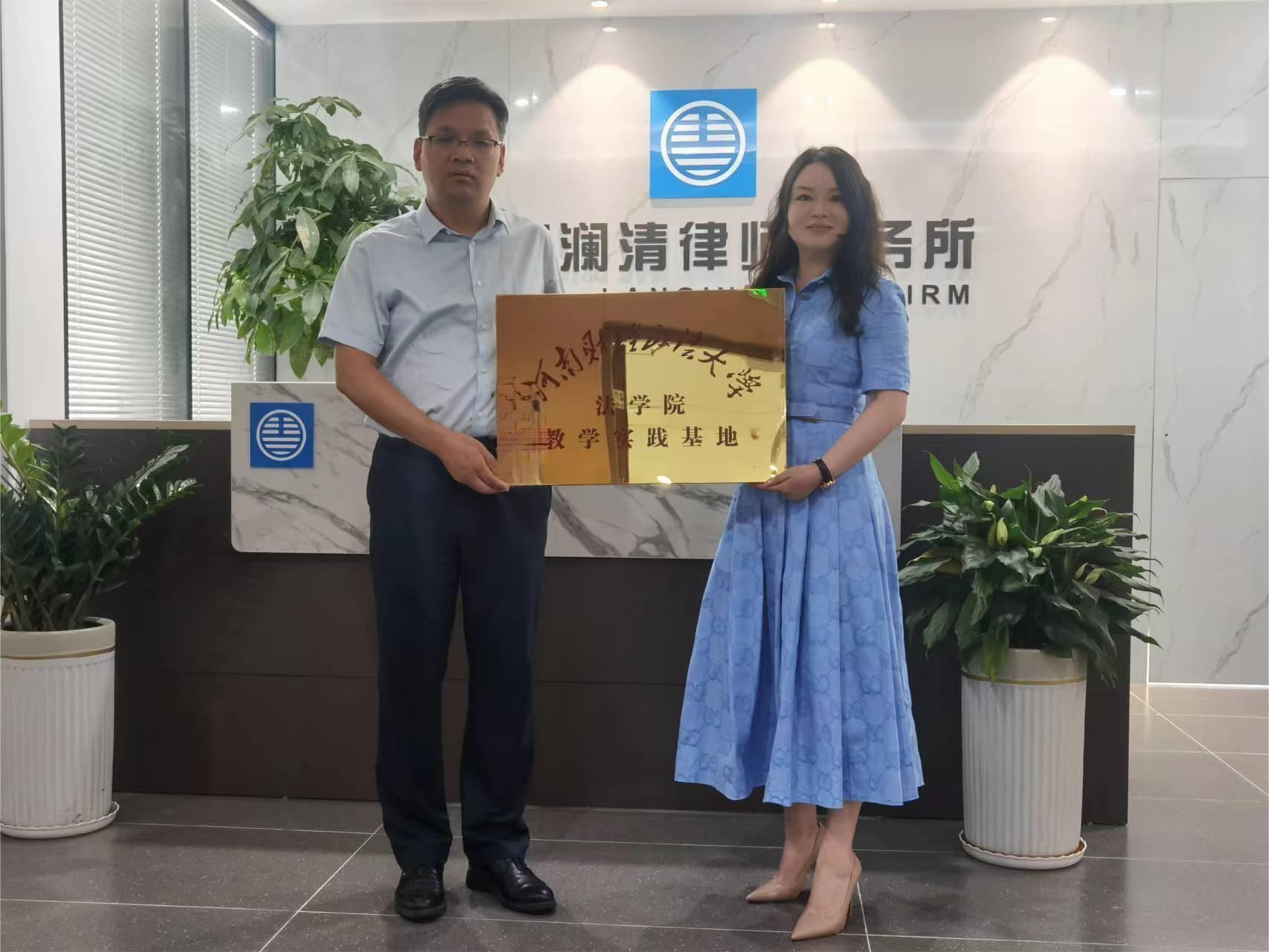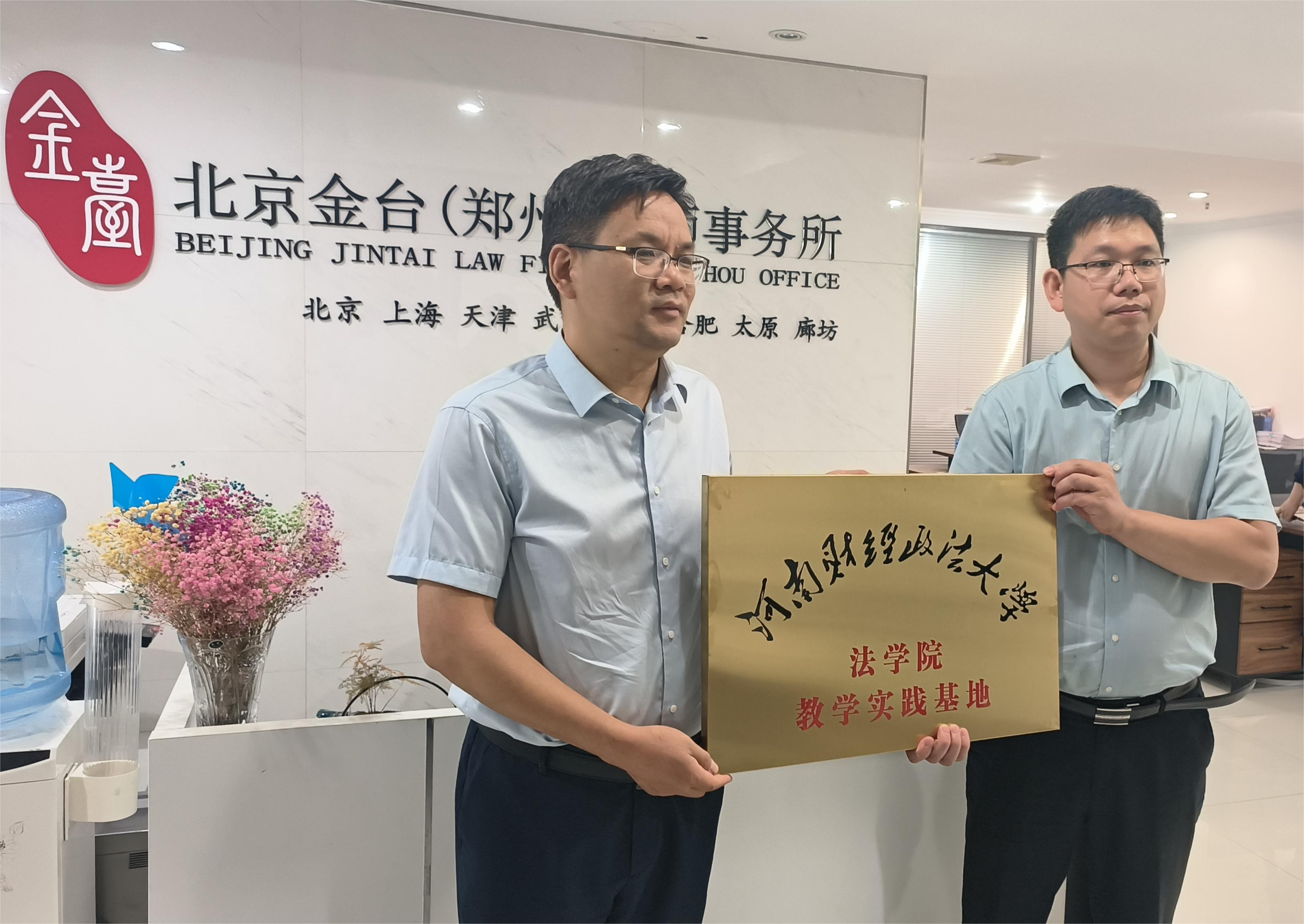 活动最后,人人爱人人爽与律所签订了《河南财经政法大学人人爱人人爽实训基地协议书》,郭书山向律所负责人授“河南财经政法大学人人爱人人爽教学实践基地”牌匾,与会人员合影留念。