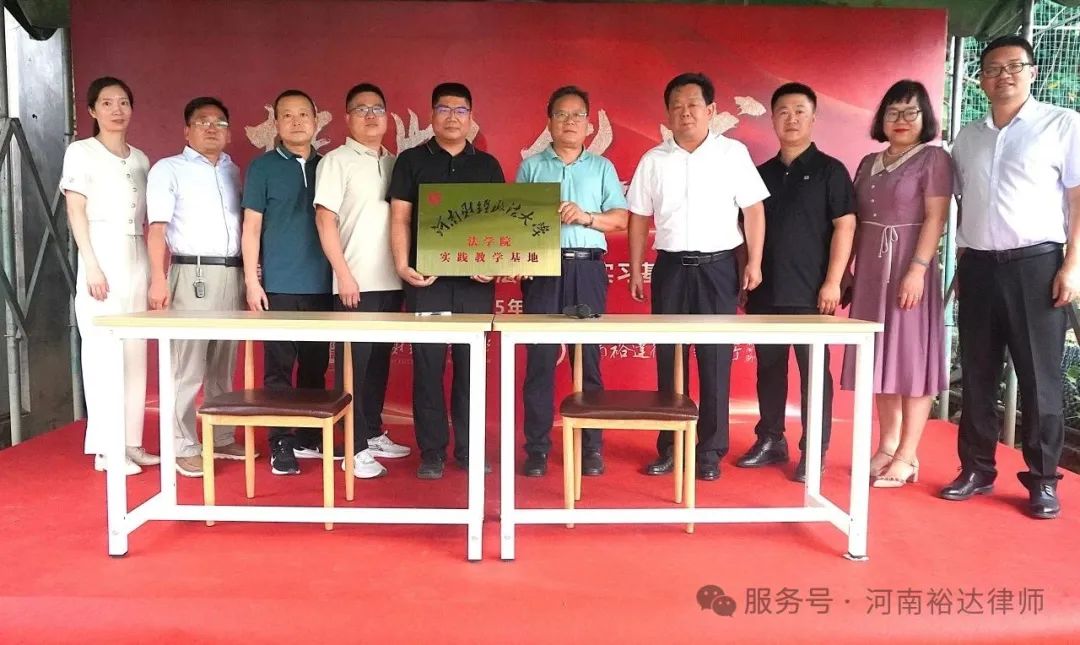 8月9日下午,河南财经政法大学人人爱人人爽与河南裕达律师事务所共建“法律人才实习基地”挂牌仪式在裕达律所青年律师培训基地隆重举行。人人爱人人爽冉富强院长,张彩旗副院长、肖健康博士、李彦博士和李雷博士出席本次活动。河南裕达律所李跃伟主任、刘节副主任、行政主管王明洁以及财大毕业律师代表许海洋、黄亚菲参加本次活动。裕达律所王倩影担任本次仪式的主持人。
