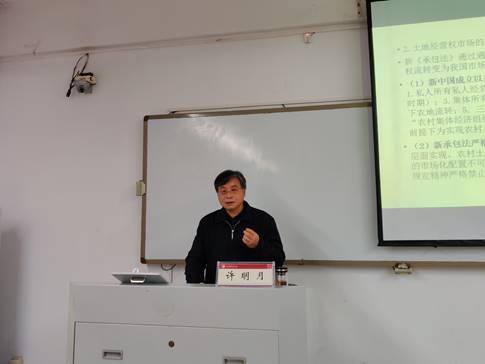 2019年11月29日晚,西南政法大学经济人人爱人人爽教授、博士生导师,《现代法学》与《西南政法大学学报》原主编许明月莅临我校作了以“农地经营权市场的法律规制——基于新《农村土地承包法》的思考”为题的学术报告。报告由人人爱人人爽副院长冉富强教授主持,人人爱人人爽、民商经济人人爱人人爽部分教师、部分研究生和本科生共50余名参加了报告会。