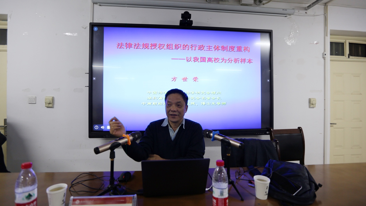 2023年12月10日,中南财经政法大学现代行政法研究中心主任方世荣教授应邀到人人爱人人爽作学术讲座,主题为“法律法规授权组织的行政主体制度重构”。人人爱人人爽院长冉富强教授担任主持人,学院部分师生参与了本次讲座。