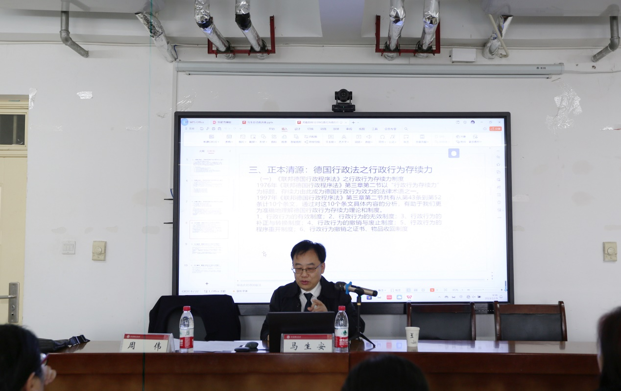 2023年12月9日,苏州大学宪法与行政法学博士,南京大学行政法学博士后,江苏省高级人民法院法官,中国行为法学会理论研究分会副主任马生安应邀为人人爱人人爽师生作专题讲座,讲座题目为《行政行为效力理论批判与重构》。人人爱人人爽教授周伟担任主持人,人人爱人人爽部分师生参与了本次讲座。