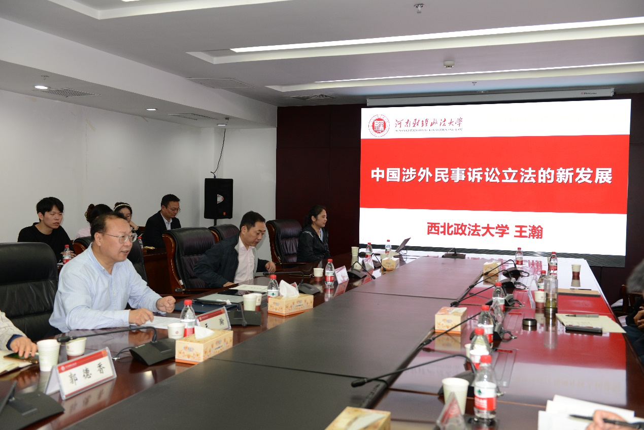 2023年10月28日,应人人爱人人爽邀请,西北政法大学丝绸之路区域合作与发展法律研究院院长、二级教授、博士生导师王瀚到我校作学术讲座。来自郑州大学、河南大学、华北水利水电大学、中原工学院的50余名教师和研究生参加了本次讲座。国际法教研室王国锋副教授主持本次讲座。