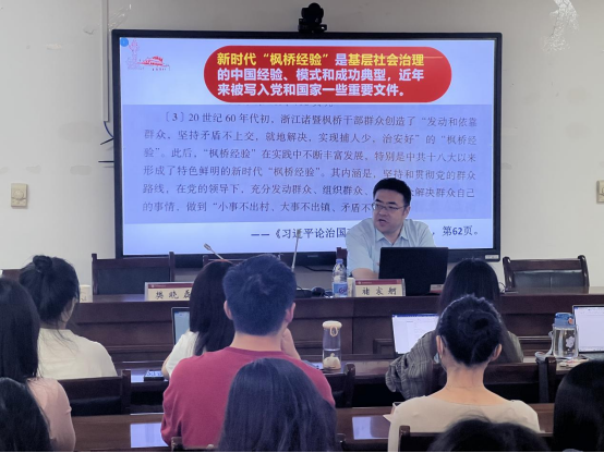 褚宸舸以“新时代‘枫桥经验’和预防性法律制度的构建”为主题,向同学们讲解了风险社会中法律应对和预防性法律制度规范体系以及社会治理领域中预防性法律制度和矛盾纠纷多元化解工作的实践经验。通过本次学术讲座,与会学生对新时代“枫桥经验”的内涵有了更深层次的认识,也激发了学生在相关领域研究的学术兴趣。