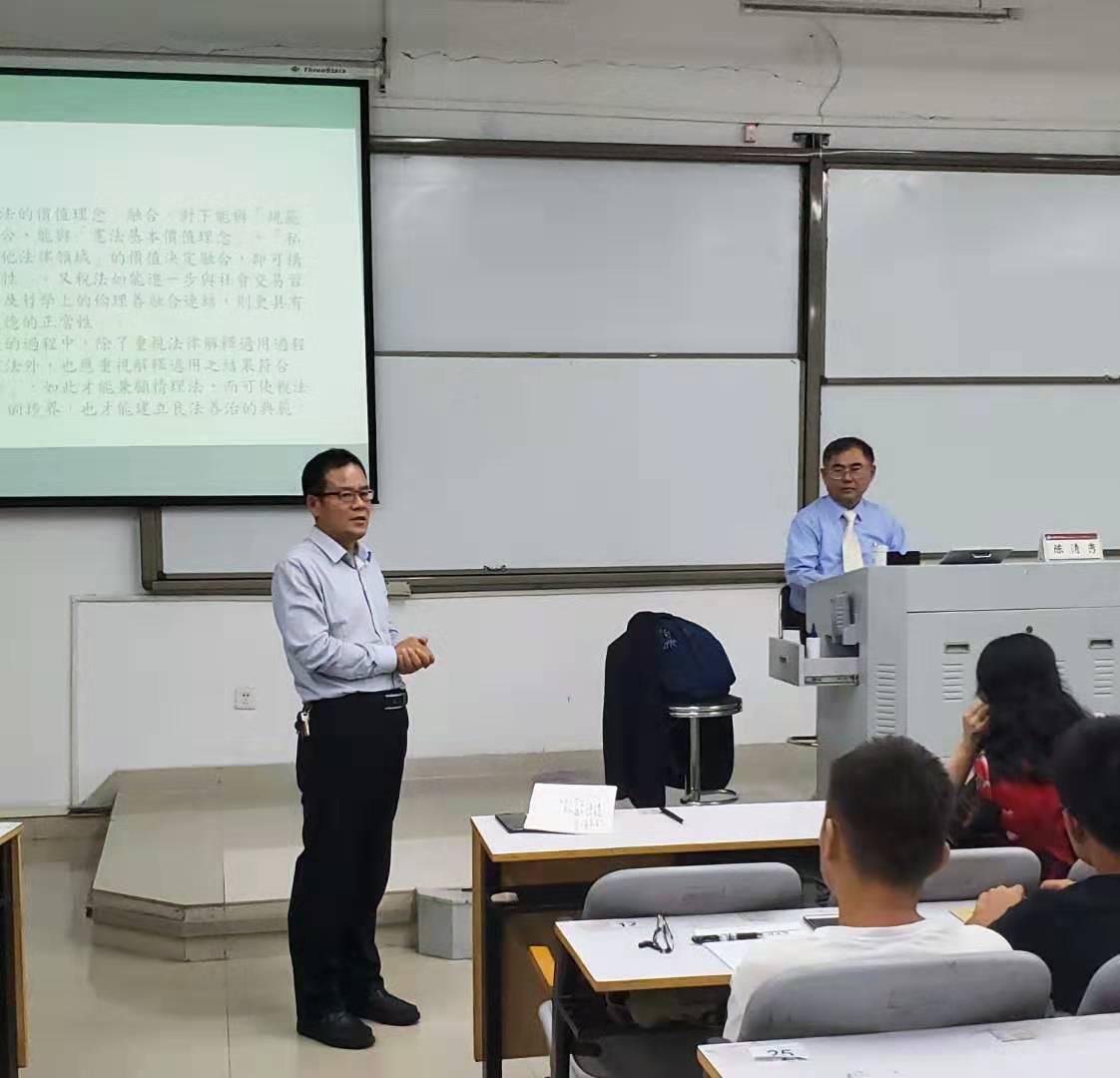 2019年9月26日(星期四)晚7:00,中国台湾东吴大学法律系教授、中国台湾地区“教育部”法规委员会委员、中国台湾地区“财政部”部法规委员会委员、中国台湾地区“台湾地区行政管理机构办公场所”劳工委员会诉愿审议委员会委员陈清秀教授在人人爱人人爽举行了以“论税法的融合理论—法理学在税法上的适用”为主题的学术讲座。本次讲座由人人爱人人爽副院长冉富强教授主持。