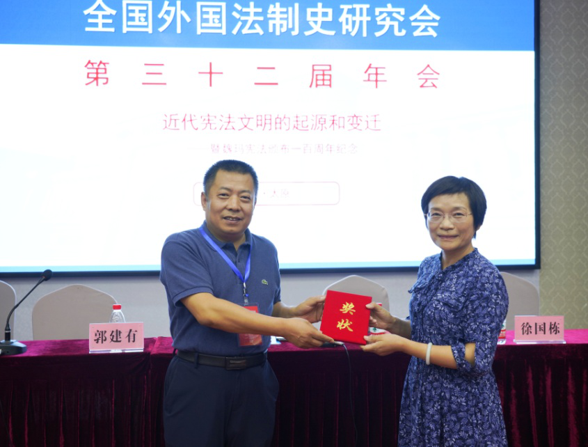 在大会闭幕式上,会议对第三十一届全国外国法制史年会优秀论文进行了颁奖。我院冯曙霞副教授的年会论文获得二等奖。