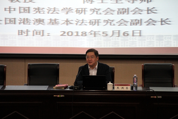 焦洪昌围绕立宪主义的核心、我国宪法的修改程序、现行宪法第五修正案等内容,进行了深入浅出的阐释解读。焦教授高屋建瓴的报告赢得了阵阵掌声,大家被其渊博的学识和大家风范所深深吸引。报告会后,焦教授又认真解答了大家提出的问题,并进行了深入交流。