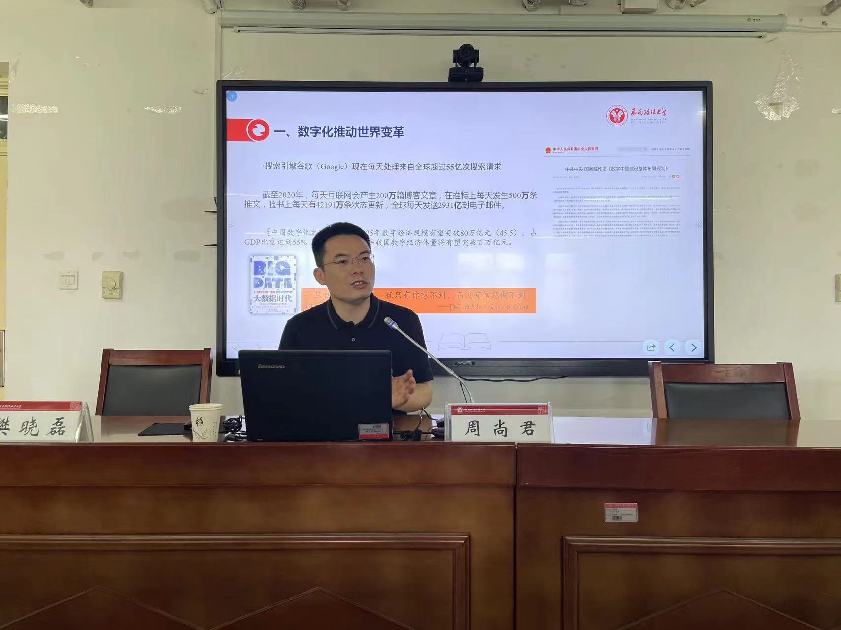 周尚君教授首先以《数字法治的三大变革》为题,以数字化推动时代变革为切入点展开讲座。周尚君教授指出,人类社会正在以加速度进入数字化“大航海”时代,一系列系统性变化正在和即将发生。在这一背景下,法治空间、法治结构、法治能力将会是我们正在面临和亟待解决的三大变革。传统的法治体系、法治能力所依赖的基础理论,在数字时代面前缺乏应对能力,这促使我们必须以更开阔的眼界和思维、更富预见性和创新性的理论予以回应。