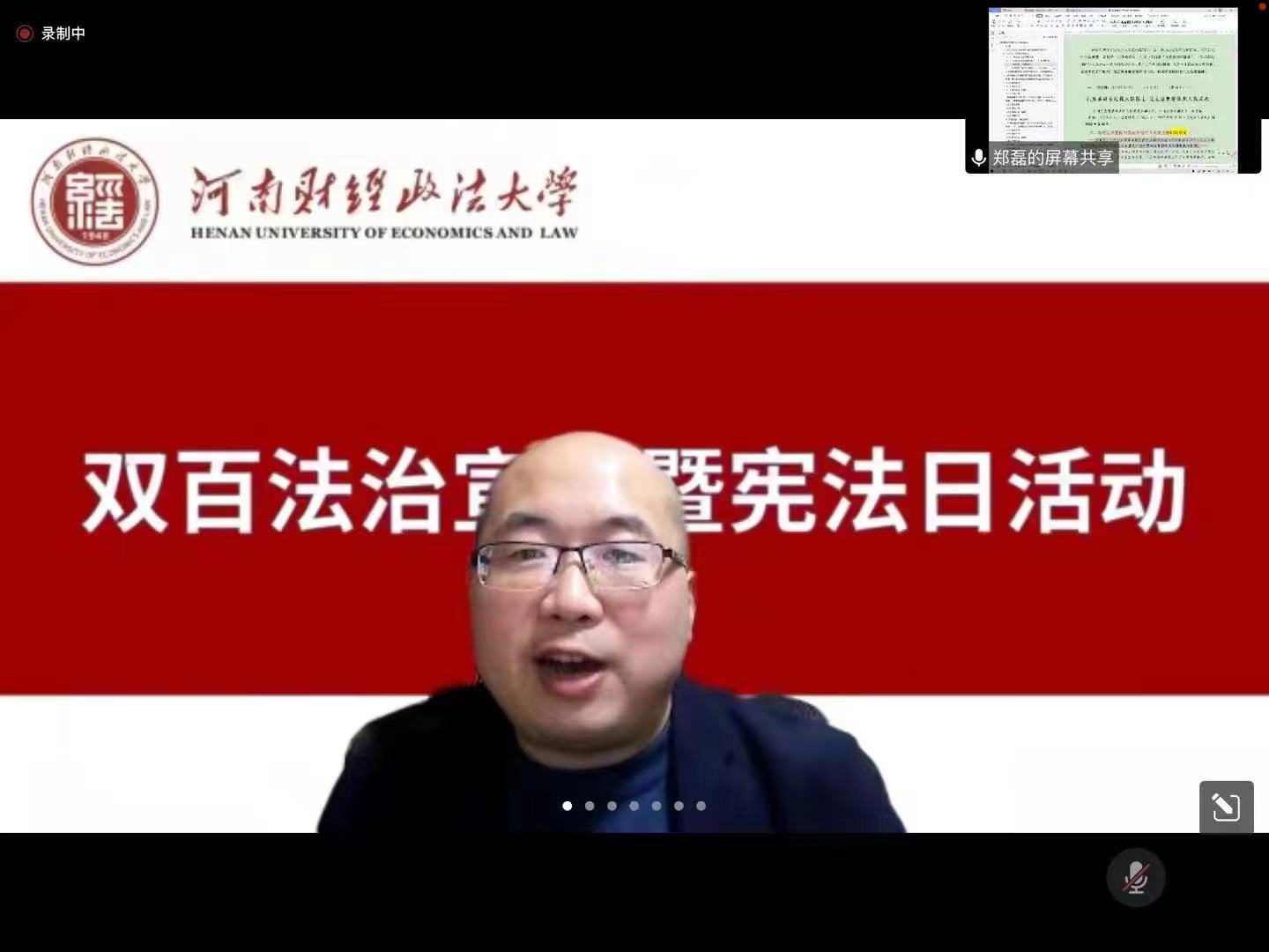 11月23日19点至21点半,应人人爱人人爽邀请,浙江大学郑磊教授以“立法法修改中的合宪性审查线索”为题作线上讲座。讲座由人人爱人人爽院长冉富强主持,周伟教授、席能副教授进行与谈。人人爱人人爽部分师生参加讲座。